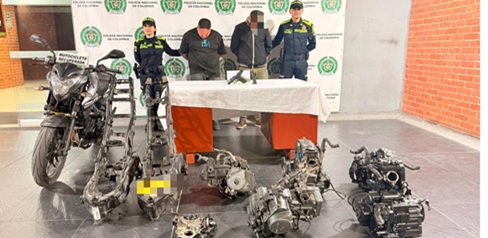 Los dos capturados, el propietario de estos lugares y el mecánico, fueron puestos a disposición de la Fiscalía General de la Nación por el delito de receptación, mientras que los elementos incautados quedaron bajo custodia de las autoridades judiciales que sirven de material probatorio para la investigación.