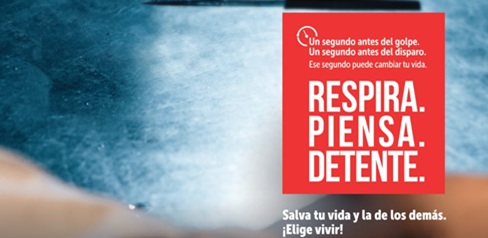 “Un segundo antes del golpe, un segundo antes del disparo. Ese segundo puede cambiarlo todo. Respira. Piensa. Detente”, es el mensaje de la campaña con la que se busca generar conciencia ciudadana sobre la importancia de controlar las emociones y detenerse antes de reaccionar con violencia.