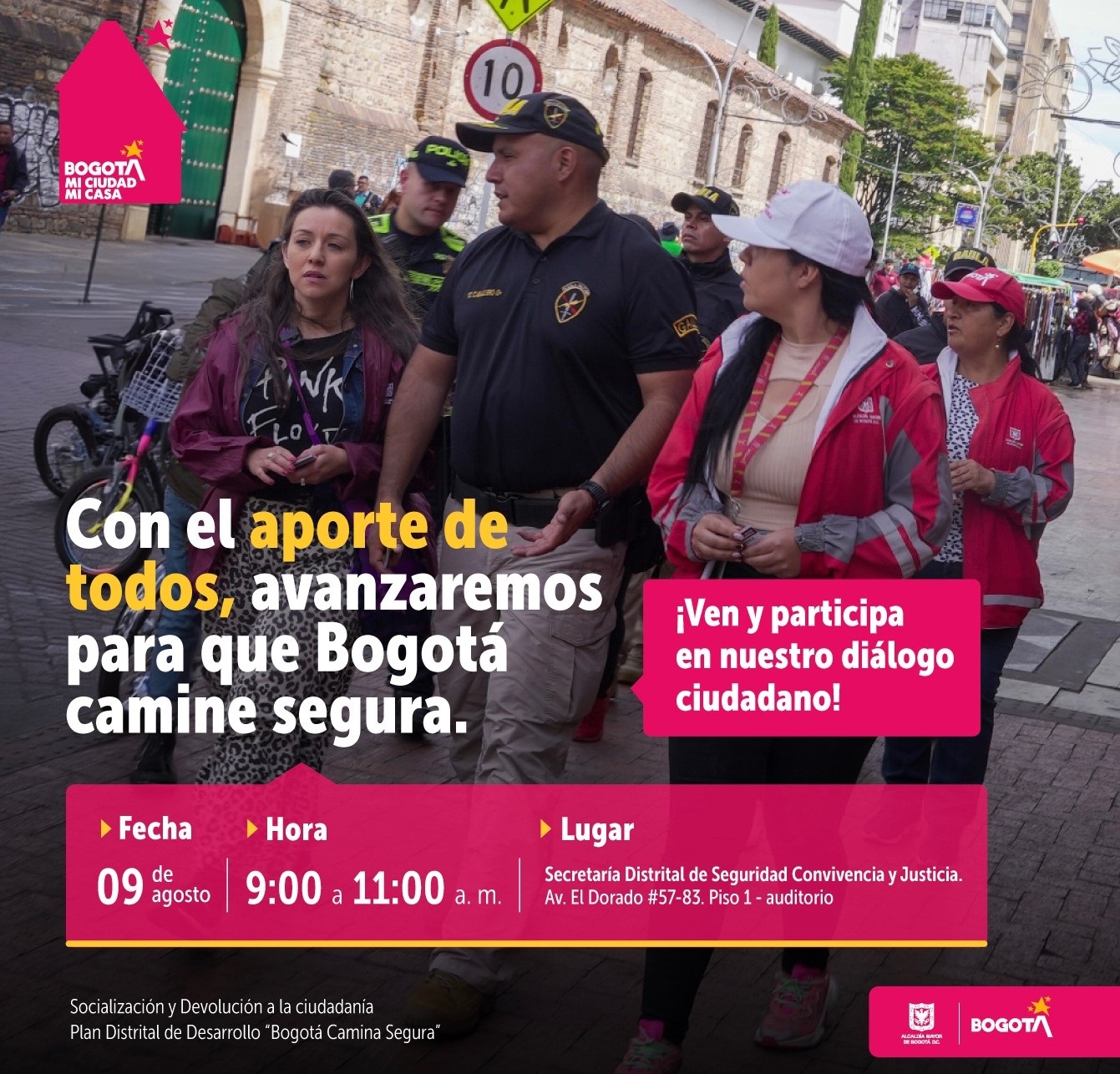 Este evento tendrá lugar el próximo 9 de agosto de 2024, entre las 9:00 a. m. y las 11:00 a. m. en la Secretaría Distrital de Seguridad, Convivencia y Justicia - Av. El Dorado #57-83. Piso 1 auditorio.